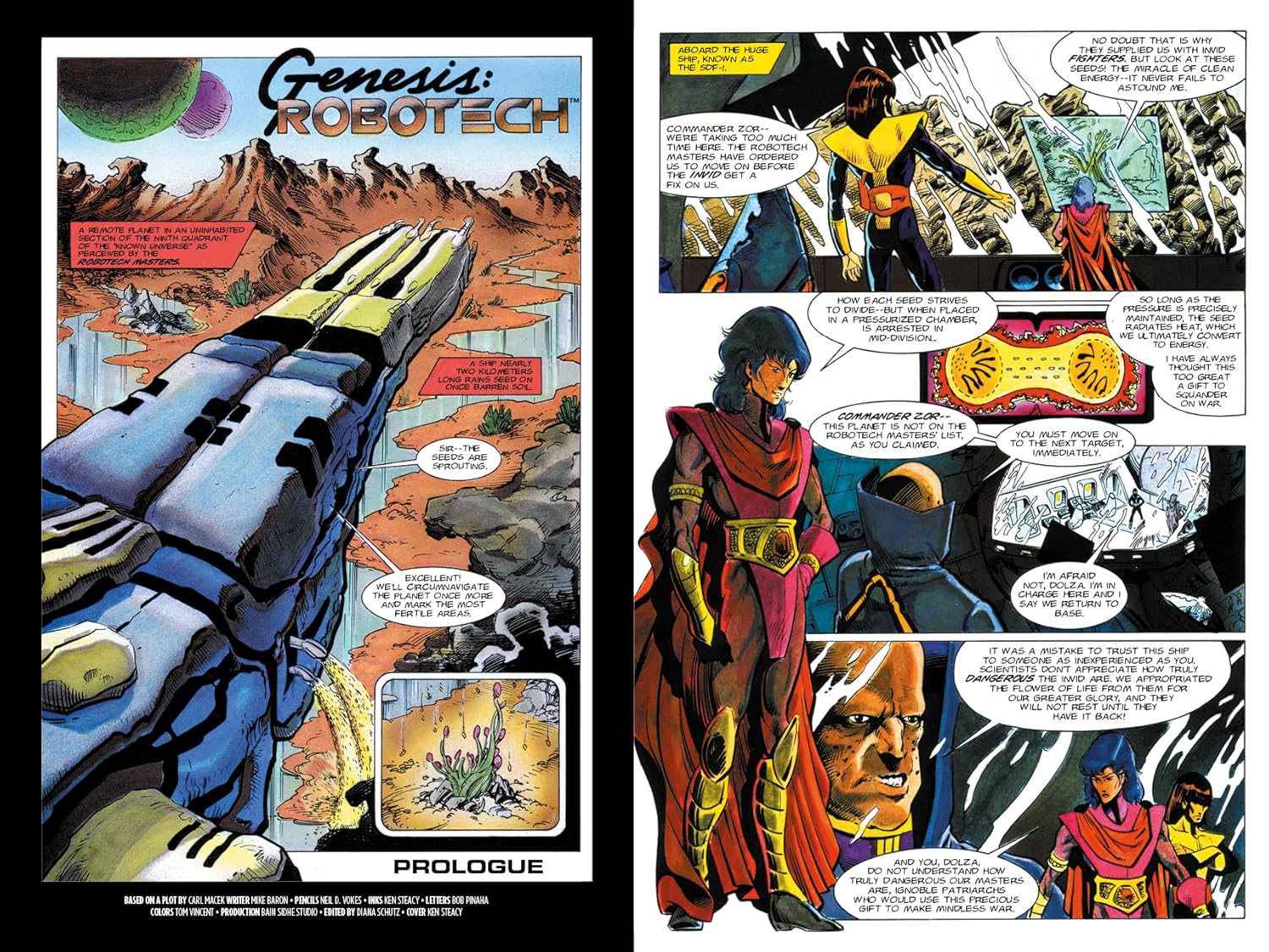 Featuring a compendium of stories from various authors and artists, telling the story of burgeoning pilot Rick Hunter and his fight for justice against the tyrannical Zentraedi. Collects Robotech The Macross Saga volumes 1-3 and features art cards of each volume’s original cover.